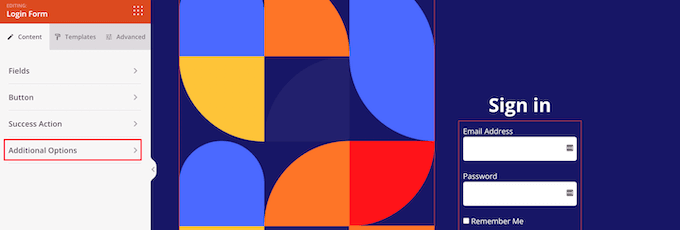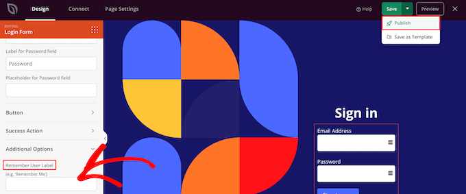 بعد ذلك ، عندما تقوم بتخصيص صفحة تسجيل الدخول ، يمكنك تعطيل خيار “تذكرني” بالنقر فوق القائمة المنسدلة “خيارات إضافية” في قائمة الخيارات اليمنى.