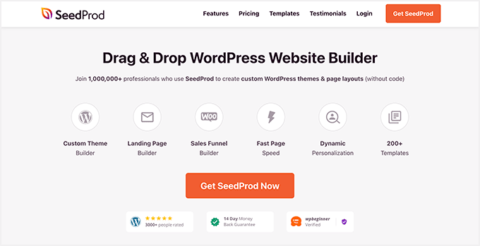 SeedProd هو أفضل منشئ صفحات WordPress بالسحب والإفلات في السوق يستخدمه أكثر من مليون موقع ويب. يمكنك استخدامه لإنشاء سمة WordPress مخصصة تمامًا دون كتابة أي رمز.