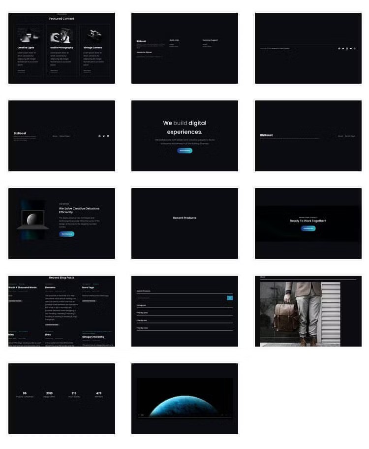 إذا كنت تبحث عن موقع للتجارة الإلكترونية، فإن Yith Wonder يعد خيارًا ذكيًا. إذا كنت تبحث عن موضوع أكثر عضوية، فإن Riverbank هو الخيار الوحيد. يعد كل من BizBoost وZeever من المواضيع المظلمة الأنيقة التي تناسب الوكالات.