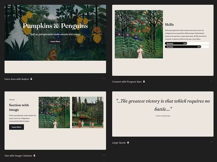 مرة أخرى، يوصى باستخدام الإضافة Otter Blocks مع Riverbank، وإليك أربعة من الأنماط الـ 23 التي تحصل عليها معه: