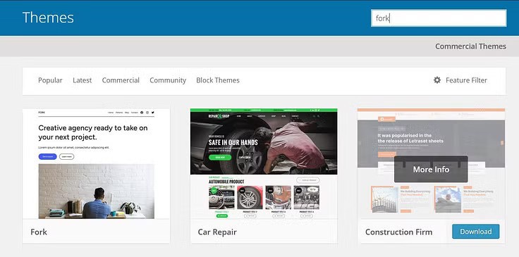 مثل Neve FSE، يعد Fork مناسبًا لمجموعة واسعة من الاستخدامات، بما في ذلك المدونات والشركات الصغيرة والتجارة الإلكترونية. حصل على ثمانية تصنيفات من فئة الخمس نجوم من المستخدمين، الذين يحبون عدد الخيارات والتصميم النظيف والمرونة.