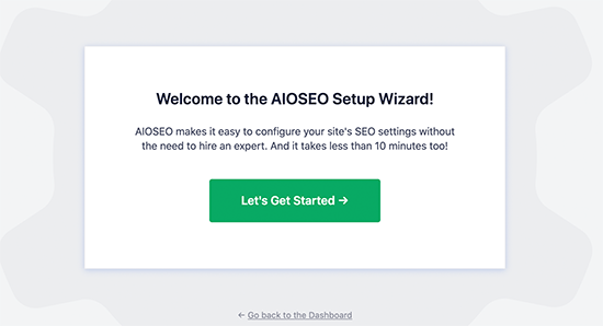 Upon activation, the plugin will automatically launch its setup wizard. You can go ahead and click the Let’s Get Started button to continue .