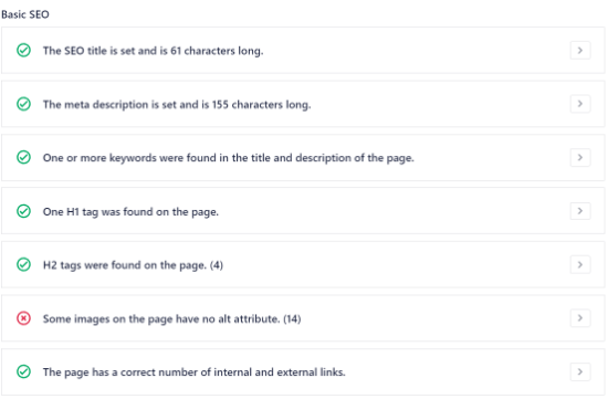 You can start with the SEO Basics section and view their SEO title and meta description along with their persona length .