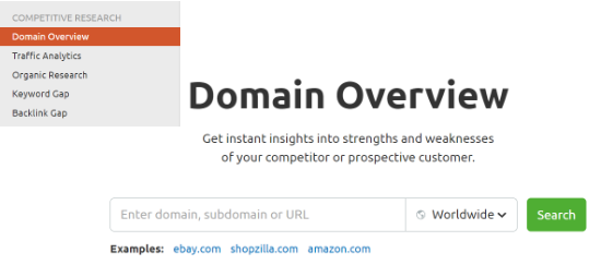 Semrush offers a powerful competitor analysis tool that helps you uncover the keywords they are using, their backlinks, top content, and much more .